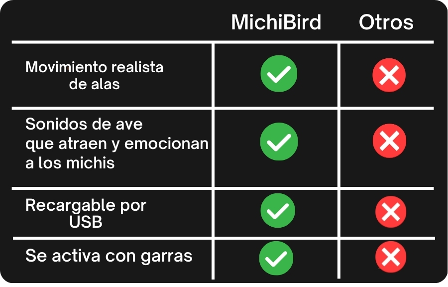 Nuestro Michi Bird es el juguete que hace que hasta el gato más flojo saque su instinto salvaje. Saltos, carreras, maullidos de emoción... ¡y cero muebles destrozados!