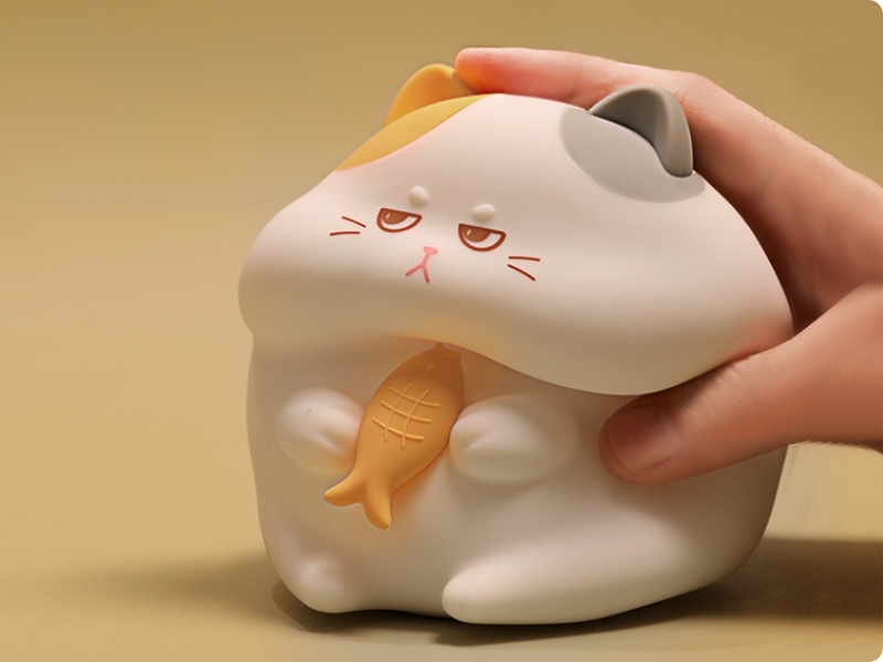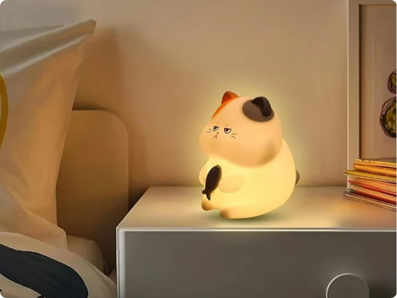 Michi Glotón con batería de 1200mAh que dura hasta 60 horas con una sola carga. Olvídate de cargarla seguido y disfruta de noches tranquilas. Incluye: luz nocturna, cable USB y manual.