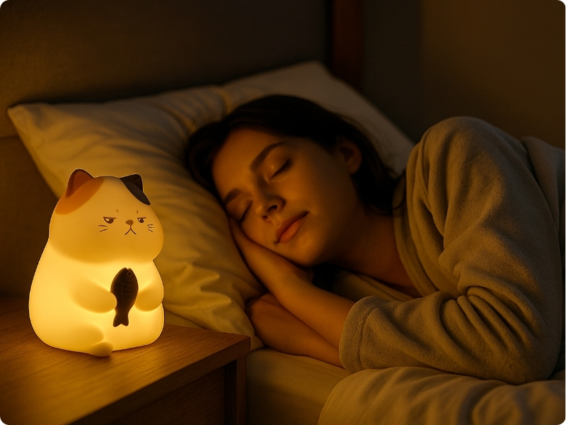Disfruta de la luz nocturna cálida y suave que ayuda a relajarse y dormir. Ajusta el brillo fácilmente con un toque, eligiendo entre dos niveles según tu preferencia.