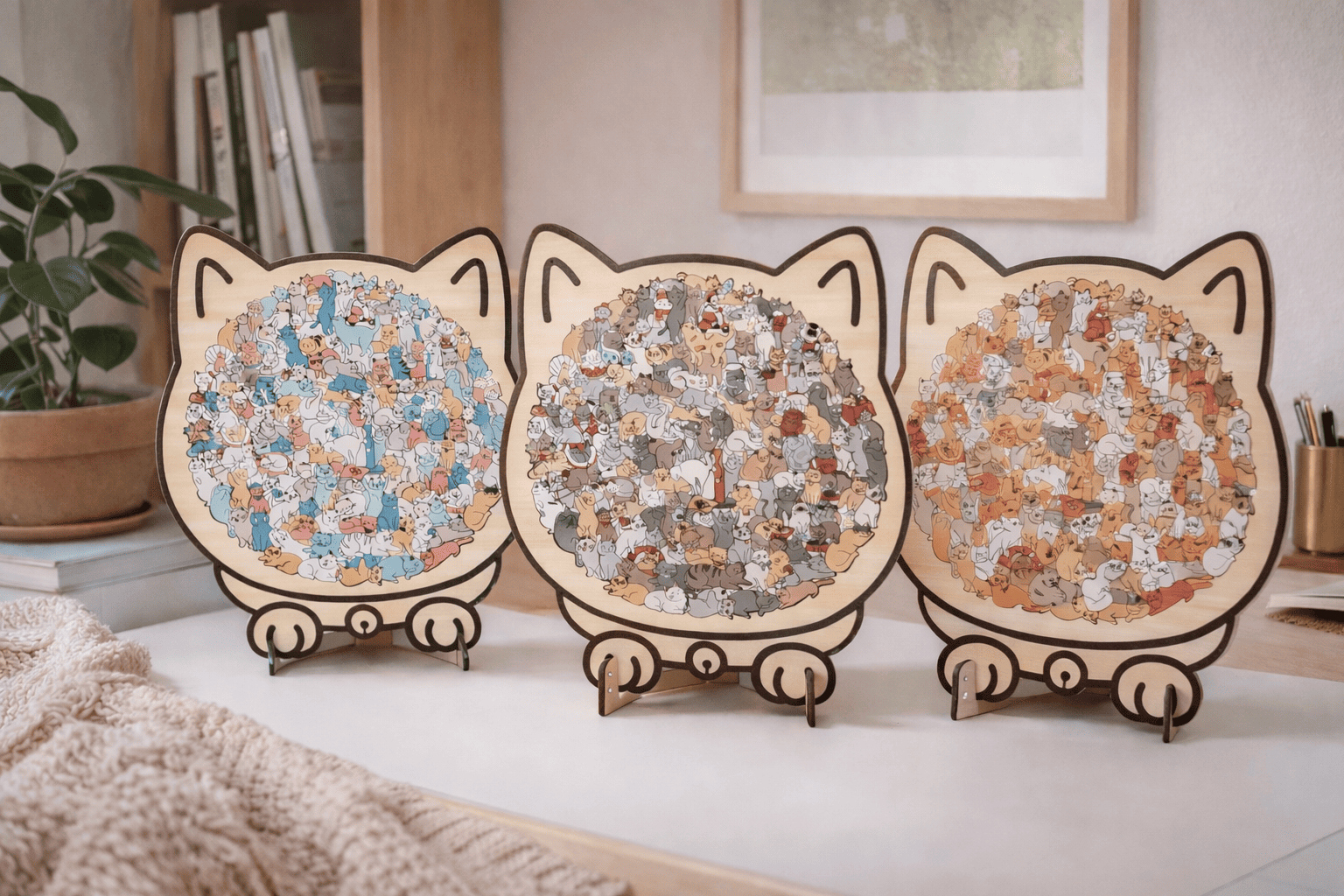 ✅ 1 rompecabezas de madera con forma de gato de 135 piezas